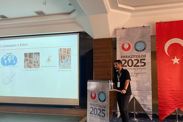 During the congress session, Gürler spoke on “The History and Current Situation of Leishmaniasis in Cyprus,” drawing attention to this infectious disease. His oral presentation, titled “Designing Domestic RT-PCR and Sequencing Kits for the Detection and Species Identification of Plasmodium Parasites in Clinical Samples: The Northern Cyprus Experience,” was part of a multi-centered study conducted jointly by the European University of Lefke, Near East University, and the University of Health Sciences (Ankara, Turkey). Gürler noted that the project developed a PCR kit capable of detecting malaria – still one of the world’s most significant infectious diseases- with high accuracy, as well as next-generation sequencing kits that enable species differentiation of malaria parasites. He emphasized that these locally produced kits reduce foreign dependency and make a significant contribution to the healthcare field through accurate diagnosis and species identification.
